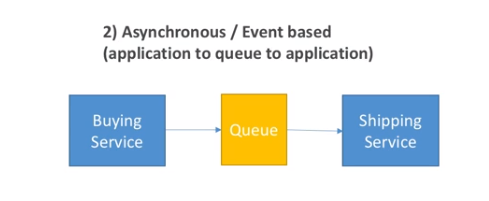 2) Asynchronous / Event based communications (다른 유형의 통합은 비동기 혹은 이벤트 기반 유형)