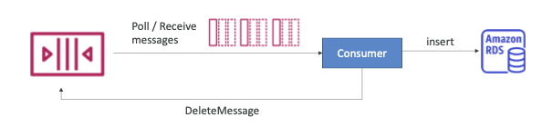 예를들어 RDS 데이터베이스에 오더를 입력하는 경우를 생각해보면, 각 오더들을 RDS 데이터베이스에 삽입하면 이 메세지들이 수신되어서 처리됐기 때문에 소비자가 이 메세지들을 DeleteMessage API로 대기열에서 삭제하게 됩니다.