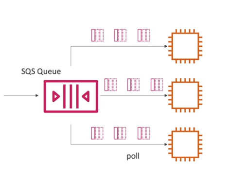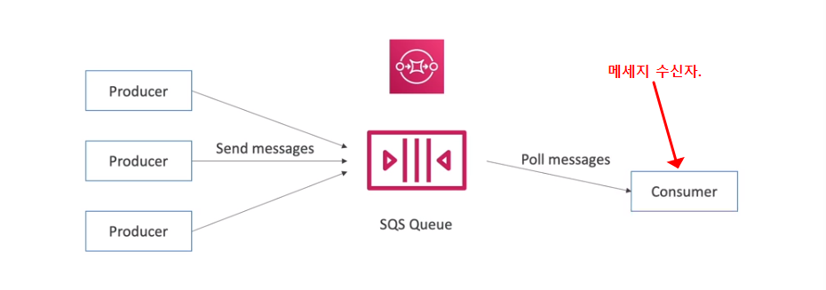 - 대기열에는 소비자가가 있고 소비자는 SQS 메시지를 폴링합니다.