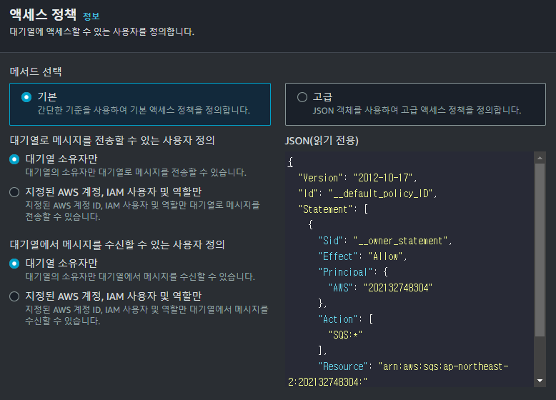 - 드롭다운을 통해 대기열에 누가 액세스 할 수 있는지를 정의할 수 있음.