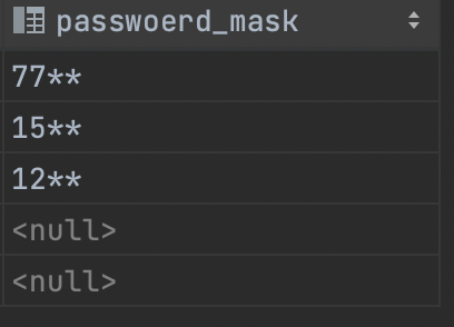 ,concat(substring(password,1,2), '**') as passwoerd_mask