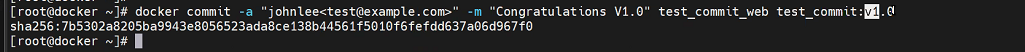 #docker commit -a "ssoontory<test@example.com>" -m "Congratulations V1.0" test_commit_web test_commit:v1.0