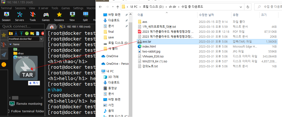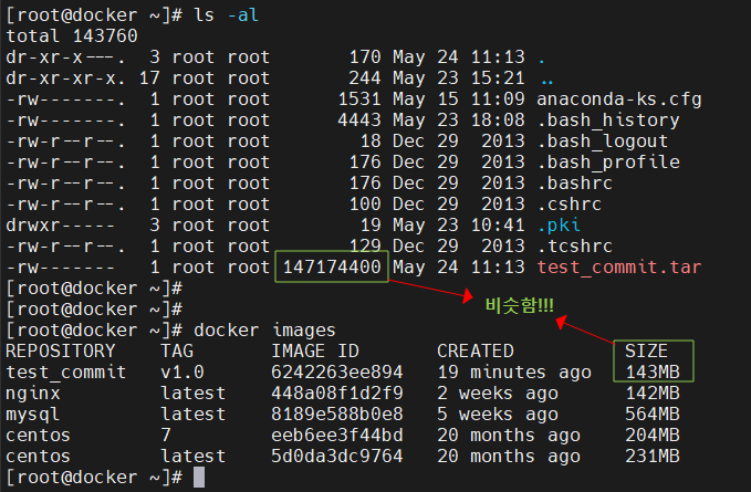 이번 실습에서는 tar파일로 test_commit 이라는 이미지를 파일로 생성해서 다른 컨테이너에 보내줄 것임.