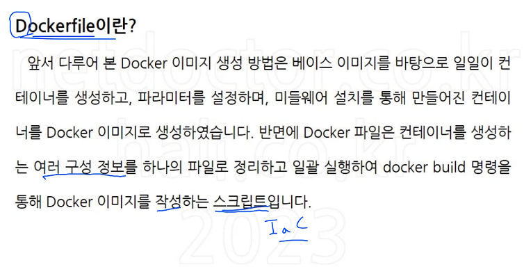 앞서 워드프레스를 이용하기 위한 구성정보들을 하나의 파일로 만들어놓은 것이 Dockerfile이 되는 것임.