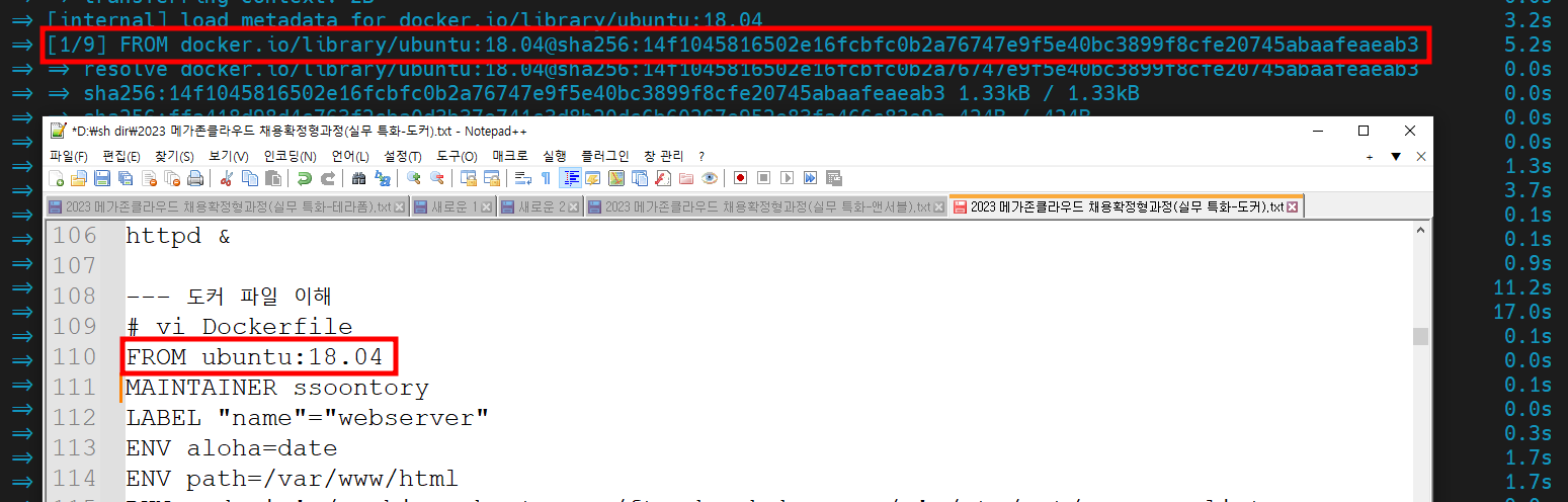 별다른 이름 없이 .만 찍어도 같은 폴더 내에 있는 Dockerfile을 찾아서 순차적으로 지가 알아서 실행해서만들어줌.