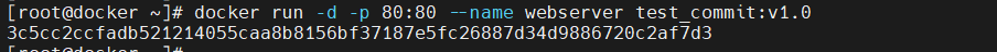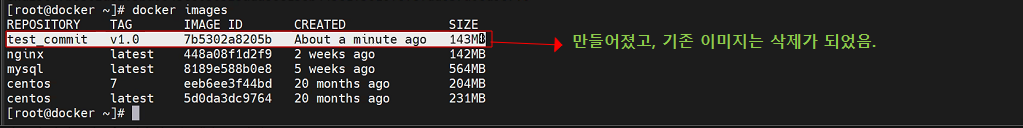 - `test_commit:v1.0`: 생성될 이미지의 이름과 태그를 지정하는 부분입니다. `test_commit`은 이미지의 이름이며, `v1.0`은 이미지의 태그입니다.