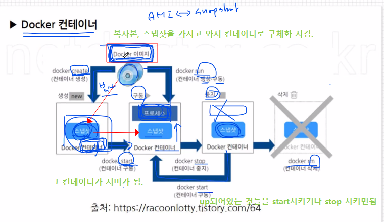 도커 이미지 : 우리가 만든 ami와 도커 이미지와 비슷함.