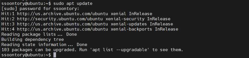 1. `sudo apt update`: 시스템의 패키지 목록을 업데이트하는 명령어입니다. 최신의 패키지 정보를 가져옵니다.