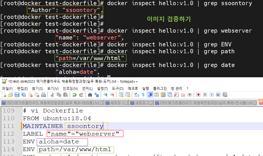 도커 파일의 정보임. 이미지의 라벨을 붙임. 이미지가 어떠한 용도로 쓰일지 정보를 전달하기 위해서 씀.
