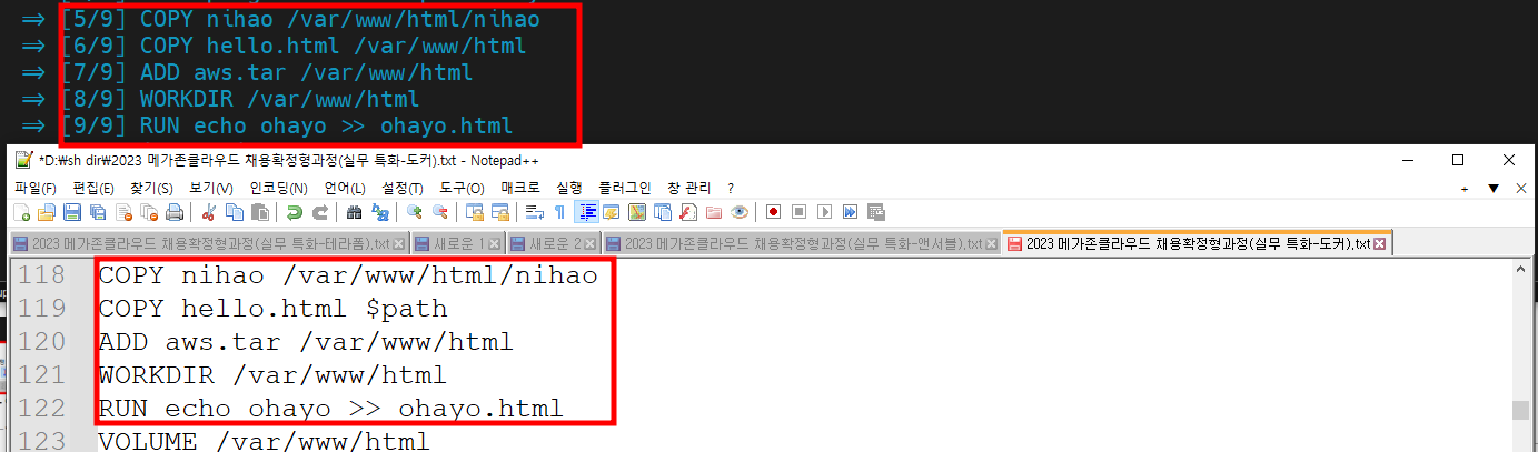 COPY 명령을 통해서 nihao라고하는 폴더를 도커 호스트에 미리 만들어둠.
