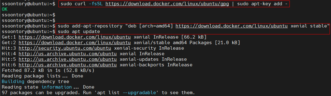 $ sudo add-apt-repository "deb [arch=amd64] https://download.docker.com/linux/ubuntu xenial stable" #xenial = 16.04