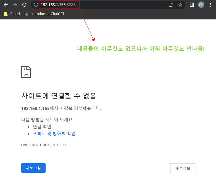 특정 경로에 있는 index 파일과 이미지 파일을 cp명령으로 통째로 옮겨줬더니 새로 접속이 됨.