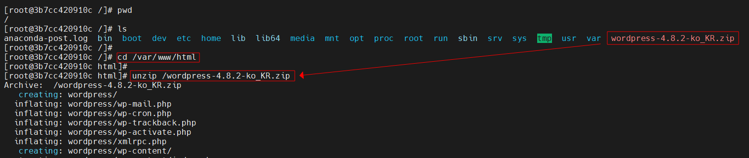 - `/tmp/index.html`: 호스트 시스템의 `/tmp` 경로에 있는 `index.html` 파일입니다. 복사할 파일의 경로를 지정합니다.