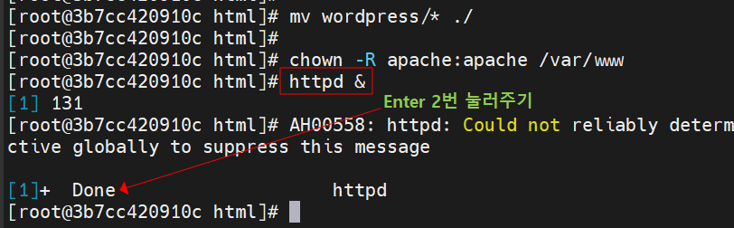 작업데이터인 WORKDIR을 지정하면 들어가자마자 경로가 최상의 폴더가 아니라 /var/www/html이 바로 나올 수 있게끔 설정하는 것이 WORKDIR이다.