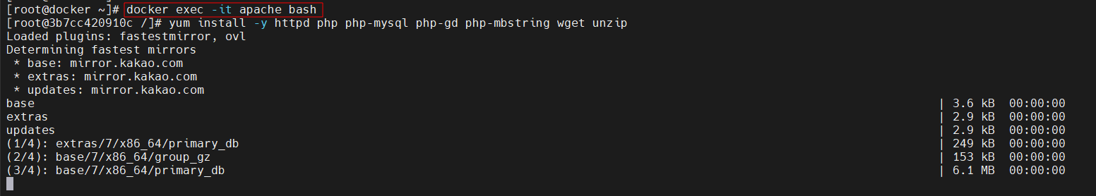 centos 자체는 아파치 웹서버는 아니지만 컨테이너 하나를 만들고 나서 나중에 뒤에서 필요한 util들을 넣어줄 것임.